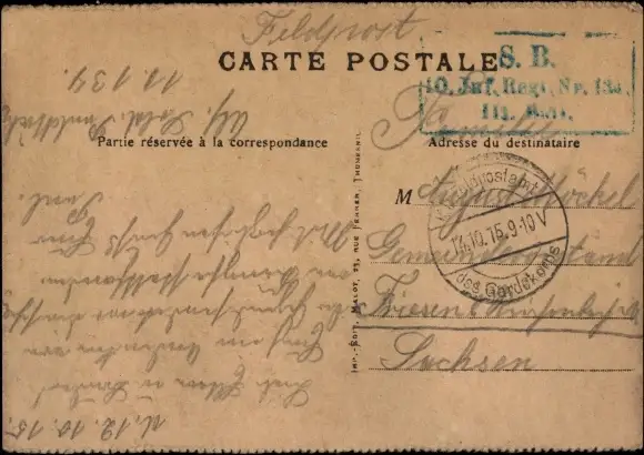 Zustand, siehe Scan, gelaufen, 1915 - ca 13 cm X 9 cm