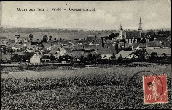 Ak Soultz sous Forêts Sulz unterm Wald Elsass Bas Rhin, Vue générale
