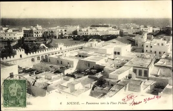 Ak Sousse Tunesien, Panorama vers la Place Pichon, Panorama