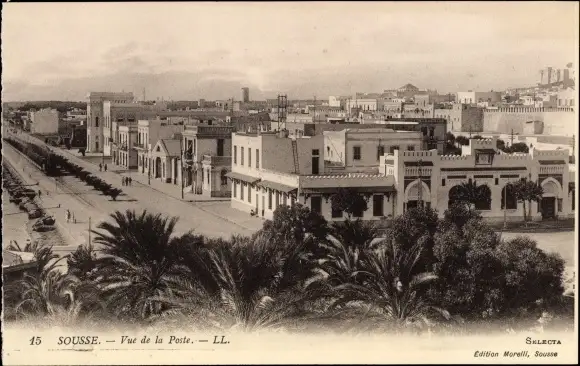 Ak Sousse Tunesien, Vue de la Poste, Blick auf das Postamt