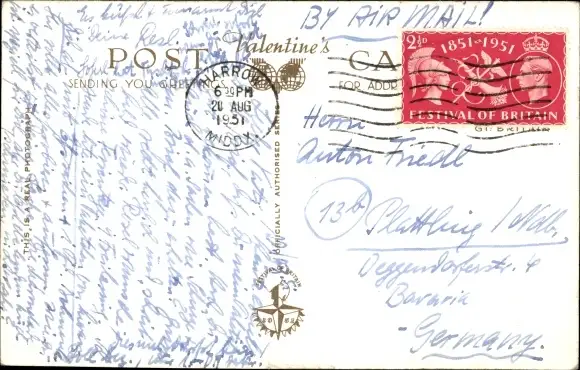 Zustand, siehe Scan, gelaufen, 1951 - ca 14 cm X 9 cm