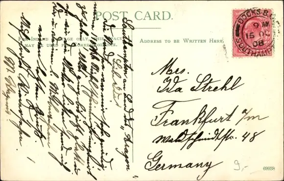 Zustand, siehe Scan, gelaufen, 1908 - ca 14 cm X 9 cm