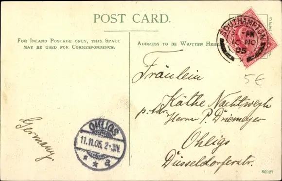 Zustand, siehe Scan, gelaufen, 1905 - ca 14 cm X 9 cm