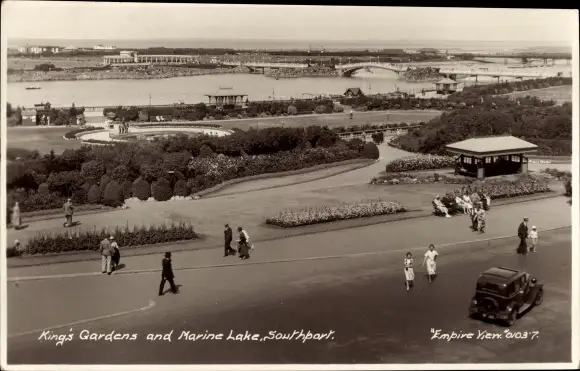 Ak Southport Merseyside England, King's Gardens and Marine Lake