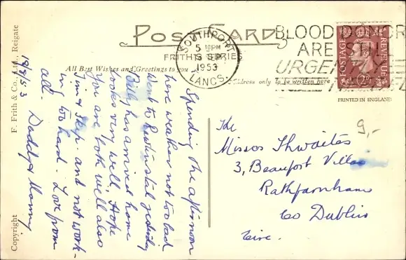 Zustand, siehe Scan, gelaufen, 1953 - ca 14 cm X 9 cm