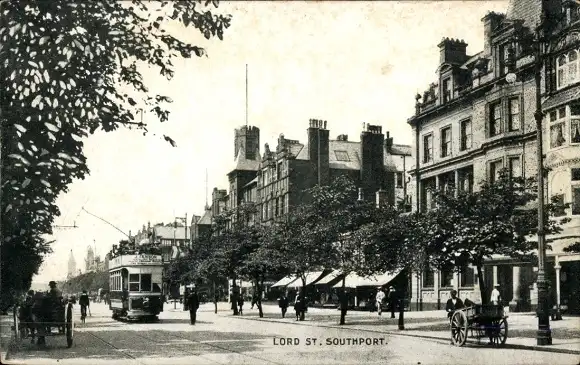 Ak Southport Merseyside England, Lord Street, Straßenbahn