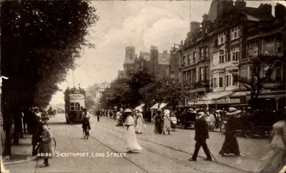 Ak Southport Merseyside England, Lord Street, Straßenbahn