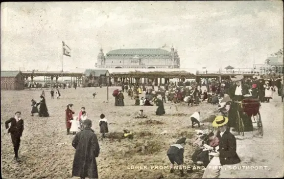 Ak Southport North West England, Lower Promenade and Pier