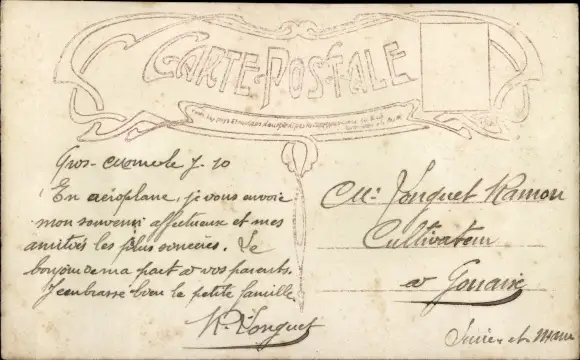 Ak Souvenir affectueux, Portrait von einem Mann in einem Flugzeug, Fotomontage