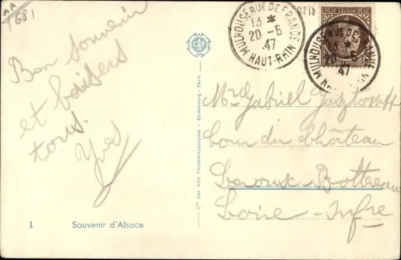 Zustand, siehe Scan, gelaufen, 1947 - ca 14 cm X 9 cm