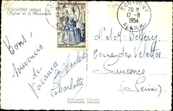 Zustand, siehe Scan, gelaufen, 1954 - ca 14 cm X 9 cm