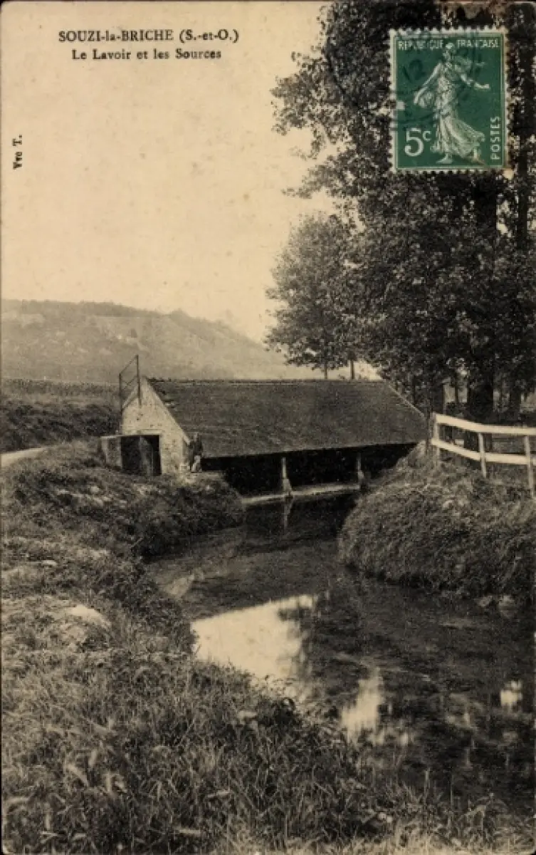 Ak Souzy la Briche Essonne, Lavoir, Sources