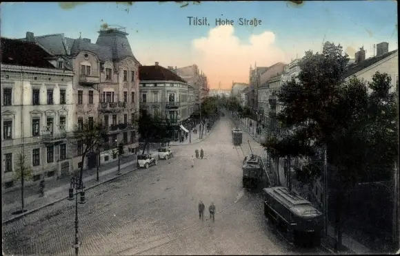 Ak Sowjetsk Tilsit Ostpreußen, Hohe Straße, Straßenbahnen