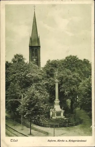 Ak Sowjetsk Tilsit Ostpreußen, Kirche, Kriegerdenkmal