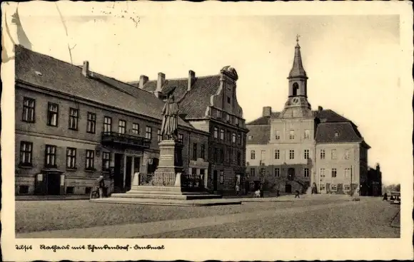 Ak Sowjetsk Tilsit Ostpreußen, Rathaus, Denkmal