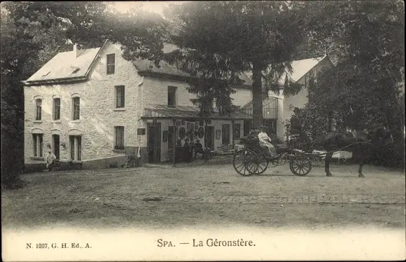 Ak Spa Wallonien Lüttich, La Source de la Géronstère, Kutsche