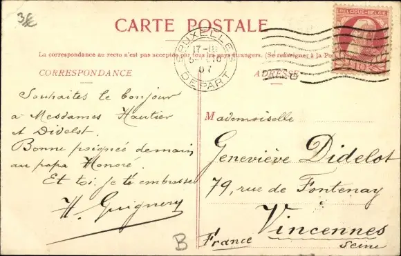 Zustand, siehe Scan, gelaufen, 1907 - ca 14 cm X 9 cm