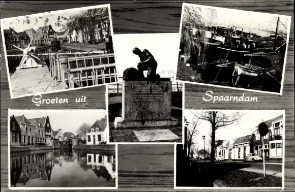 Ak Spaarndam Nordholland, Monument, Flusspartie, Häuser, Ruderboote