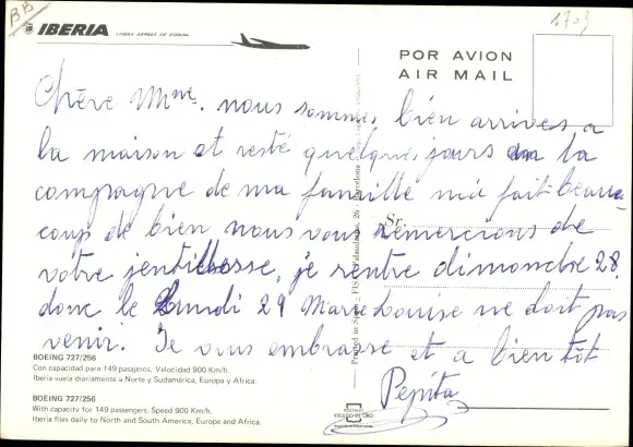 Ak Spanisches Passagierflugzeug, Iberia, Boeing 727 256