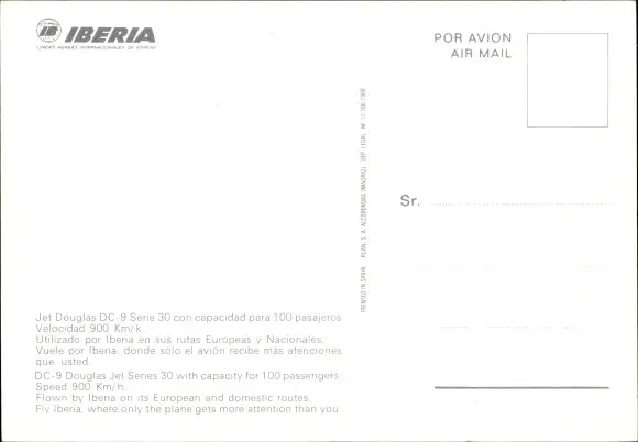 Ak Spanisches Passagierflugzeug, Iberia, Douglas DC 9