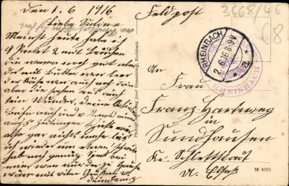 Zustand, siehe Scan, gelaufen, 1916 - ca 14 cm X 9 cm