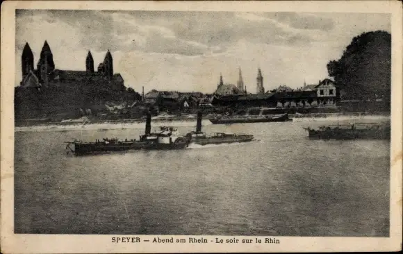 Ak Speyer am Rhein, Abend am Rhein, Dom, Schiff