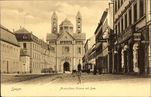 Ak Speyer am Rhein, Maximilians Straße, Dom