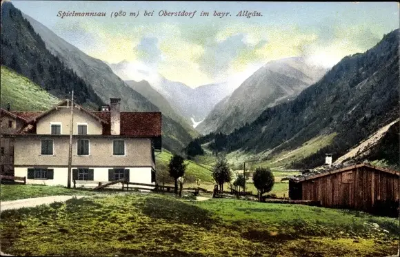 Ak Spielmannsau Oberstdorf im Oberallgäu, Ortspartie