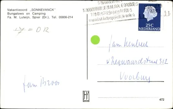 Ak Spier Wijster Drenthe, Vakantieoord Sonnevanck, Ingang met Hoofdgebouw