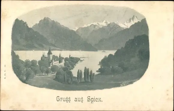 Ak Spiez am Thuner See Kanton Bern, Blick auf den Ort