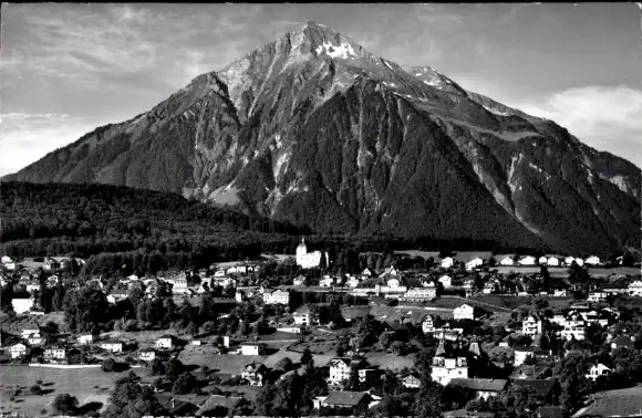 Ak Spiez am Thuner See Kanton Bern, Gesamtansicht, Niesen