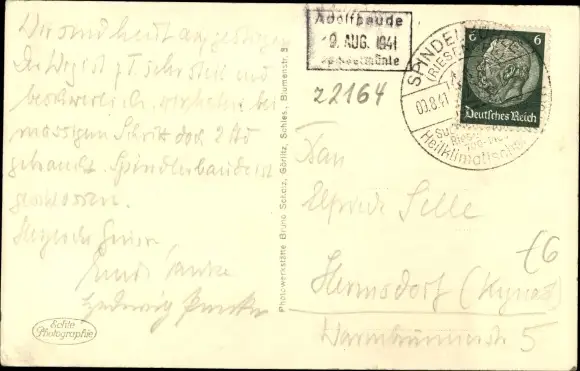 Zustand, siehe Scan, gelaufen, 1941 - ca 14 cm X 9 cm