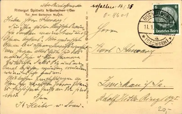 Zustand, siehe Scan, gelaufen, 1935 - ca 9 cm X 14 cm