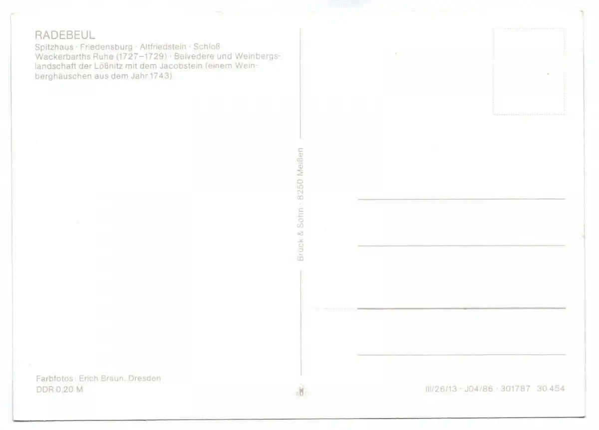 Ak Spitzhaus Friedensburg Altfriedstein Schloß Radebeul 1986