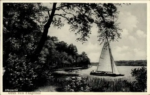Ak Spitzmühle Strausberg in der Mark, Fängersee, Ufer, Segelboot