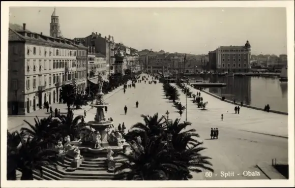 Ak Split Kroatien, Obala, Brunnen, Straßenpartie