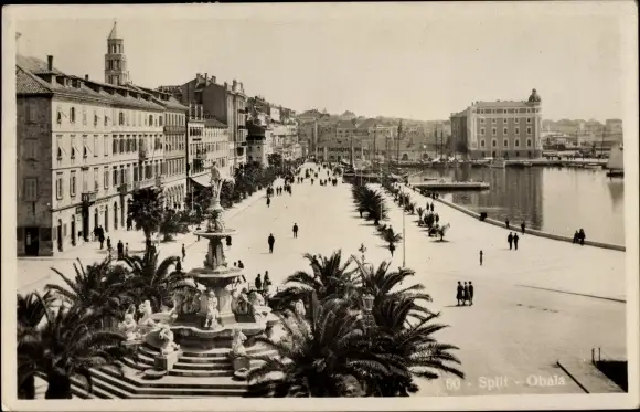 Ak Split Kroatien, Obala, Denkmal, Promenade