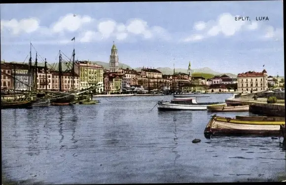 Ansichtskarte, Postkarte, Hafen, Schiffe, Boote, Dampfer, Boot