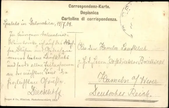 Zustand, siehe Scan, gelaufen, 1908 - ca 14 cm X 9 cm