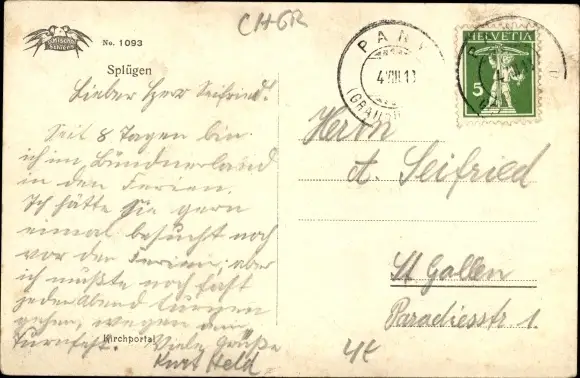 Ak Splügen Kt Graubünden Schweiz, Blick auf eine Tür, Portal