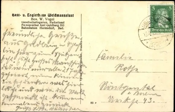 Zustand, siehe Scan, gelaufen, 1927- Inh. W. Vogel - ca 9 cm X 14 cm