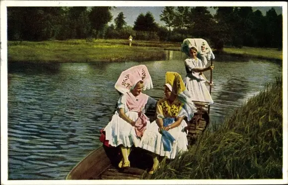 Ak Spreewald, Spreewälderinnen fahren zum Kirchgang