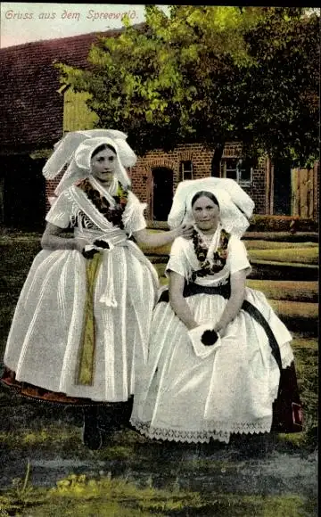 Ak Spreewald, Zwei Frauen in Volkstrachten