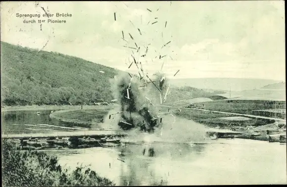 Ak Sprengung einer Brücke durch 11er Pioniere