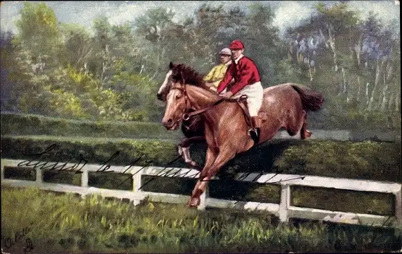 Ak Springreiten, Hindernisrennen, Kopf an Kopf