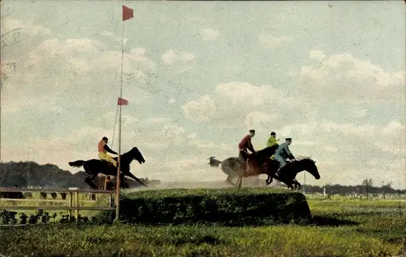 Ak Springreiten, Hürden, Jockeys zu Pferden