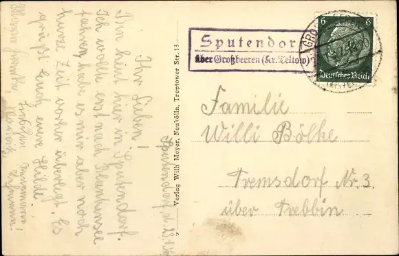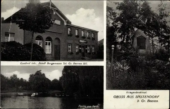 Ak Sputendorf Stahnsdorf in Brandenburg, Kriegerdenkmal, Partie am Teisch, Gasthof