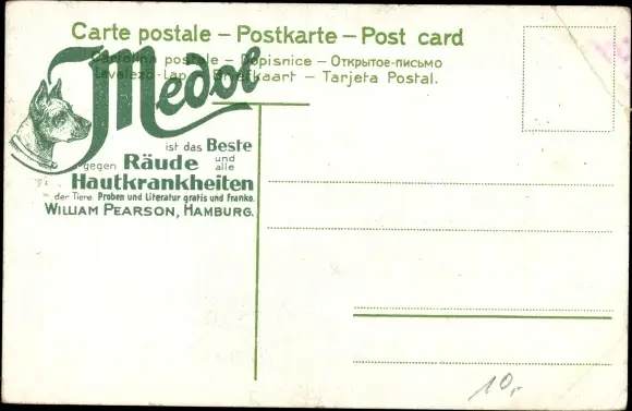 Zustand, siehe Scan, ungelaufen- Reklamezudruck Medol, William Pearson, Hamburg - ca 13 cm X 9 cm