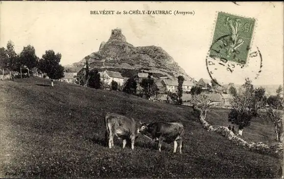 Ak St-Chely-d'Aubrac Aveyron, Belvezet, Kühe auf der Wiese
