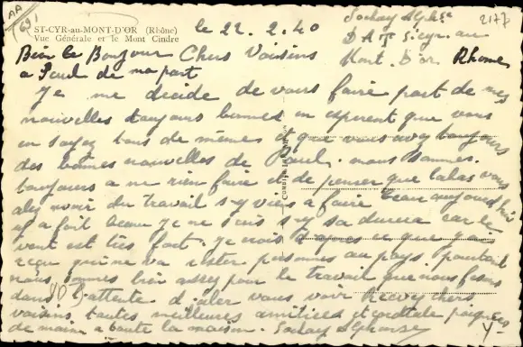 Ak St. Cyr au Mont d'Or Rhône, Vue générale et le Mont Cindre